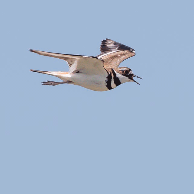 Killdeer lead predators away from their nests by faking a broken wing. When the predator follows far enough the killdeer flies away.
