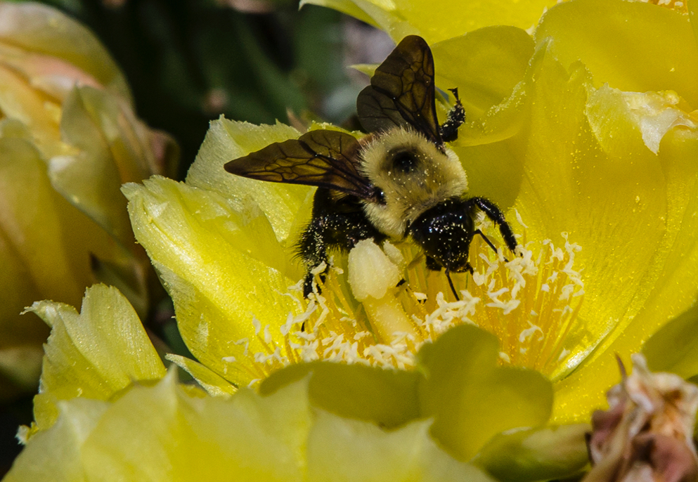 Prickly Pear Cactus is one of the distinct plants found near the shoreline in the Refuge. Prickly Pear Cactus produces beautiful big yellow flowers that bumblebees and other pollinating insects love.