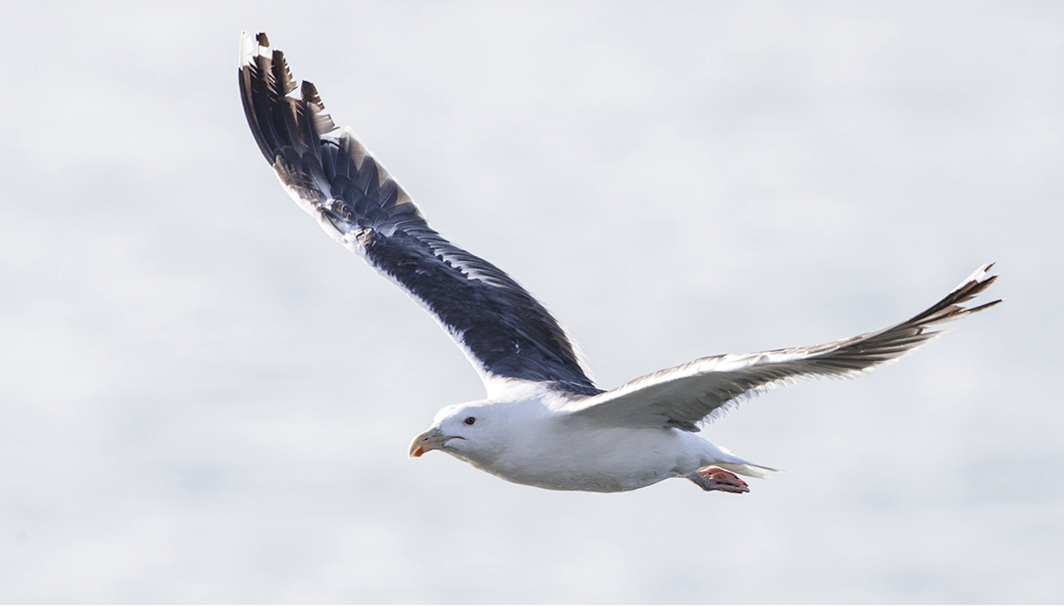 Great Black-backed Gulls have wings that are black on top. Like Herring Gulls, the have a yellow beak and are white underneath.